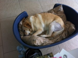 En nog steeds een ideale patient. Nog steeds zit ze niet te muppen of iets, ondanks dat ze nu echt 6 weken in de bench zit. Ik denk dat Harley er meer problemen mee zou hebben, hij zat vroeger als pup al niet echt graag in de bench. Bo wel… die heeft tot een jaar terug altijd in de bench gelegen, wel met het deurtje eruit, maar toch.