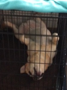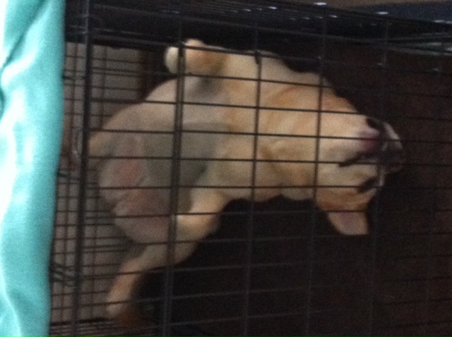 Zo weer een dag dichter bij de 6 weken periode. En eigenlijk niets nieuws te melden, dus dat is goed. Ze loopt lekker haar rondjes.. en dat is precies wat we willen. Tussendoor zit ze nog steeds niet te muppen in haar bench dat ze het zat is. Dus ja wat wil je nog meer…