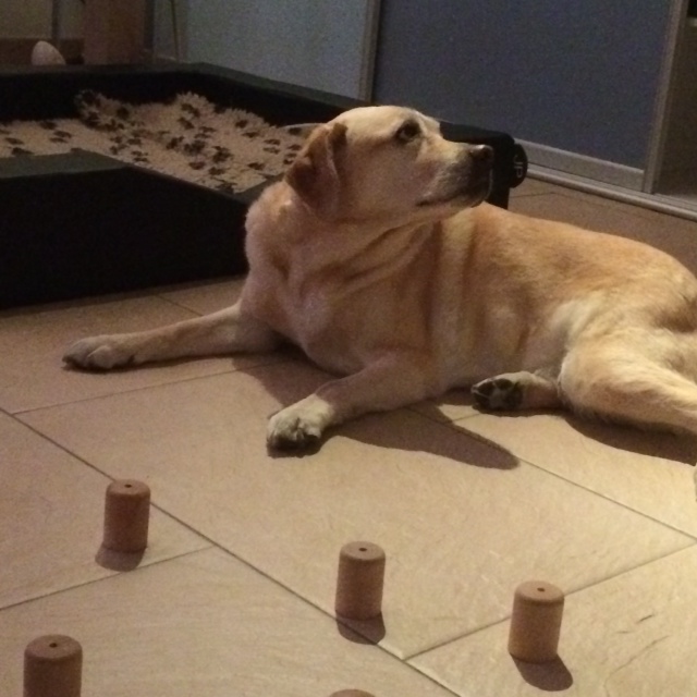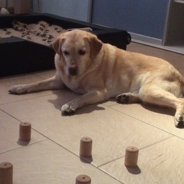 Gelukkig is alles goed gegaan. Althans we weten uiteraard niet wat ze allemaal heeft uitgespookt omdat we er niet waren.. maar we gaan ervan uit dat ze gewoon lekker gelegen heeft. Toen ik thuis kwam om half 1 zat ze niet bij de deur, ook lag ze niet op het matras … ze kwam van haar plek onder de tafel vandaan of voor de tafel. Of ze moet in de bench hebben gelegen, maar dat denk ik niet. Eigenlijk kwam ze als vanouds naar de deur met haar smurf. Liep ook gewoon.. dus prima.